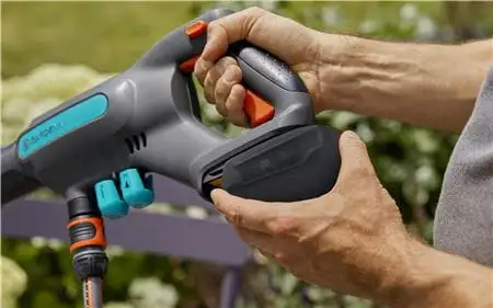 Det moderna kompletta setet AquaClean 24/18V P4A från GARDENA ger en mobil, kompakt och sladdfri mellantryckstvätt för hemmet och trädgården – miljontals hus- och trädgårdsägare världen över väljer GARDENA. Det praktiska setet innehåller ett antal tillbehör för maximal mångsidighet i vardagen samt snabb och okomplicerad användning. Den här högkvalitativa mellantryckstvätten från GARDENA är en av de mest kraftfulla och flexibla produkterna i sitt slag och levereras med ett POWER FOR ALL-batteri på 18 V. Vattentrycket kan justeras i tre steg. Envis smuts och svåra fläckar avlägsnas noggrant med medeltrycket på 24 bar. Trycket kan minskas till 14 bar efter behov. Det praktiska Soft-Clean-läget minskar trycket ytterligare, och vid 9 bar är användningen extra skonsam. Dessutom ger det reducerade trycket lägre energiförbrukning och därmed längre batteritid. Det innebär att mellantryckstvätten kan arbeta i cirka 38, 20 eller 16 minuter beroende på driftläge.