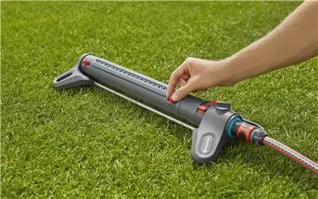 Det går på bara några få steg att montera den oscillerande vattenspridaren för hand och ansluta den till en slang. Använd skjutreglaget och ställ in området (7–21 meter) och typen av bevattning. Det går att vattna bara ena sidan (vänster eller höger) i stället för att vattna båda sidorna samtidigt. Spridningen kan också ställas in på valfri bredd, på mellan 4 och 17 meter. Du kan dessutom finjustera genom att reglera vattenflödet.