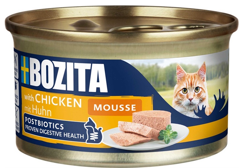 Bozita mousse innehåller Postbiotika som stödjer en balanserad tarmflora och ett starkt immunförsvar. Den hjälper kroppen att känna igen och hantera skadliga mikroorganismer, bidrar till minskad avföringslukt och stödjer rörlighet, vitalitet och ett aktivt liv.