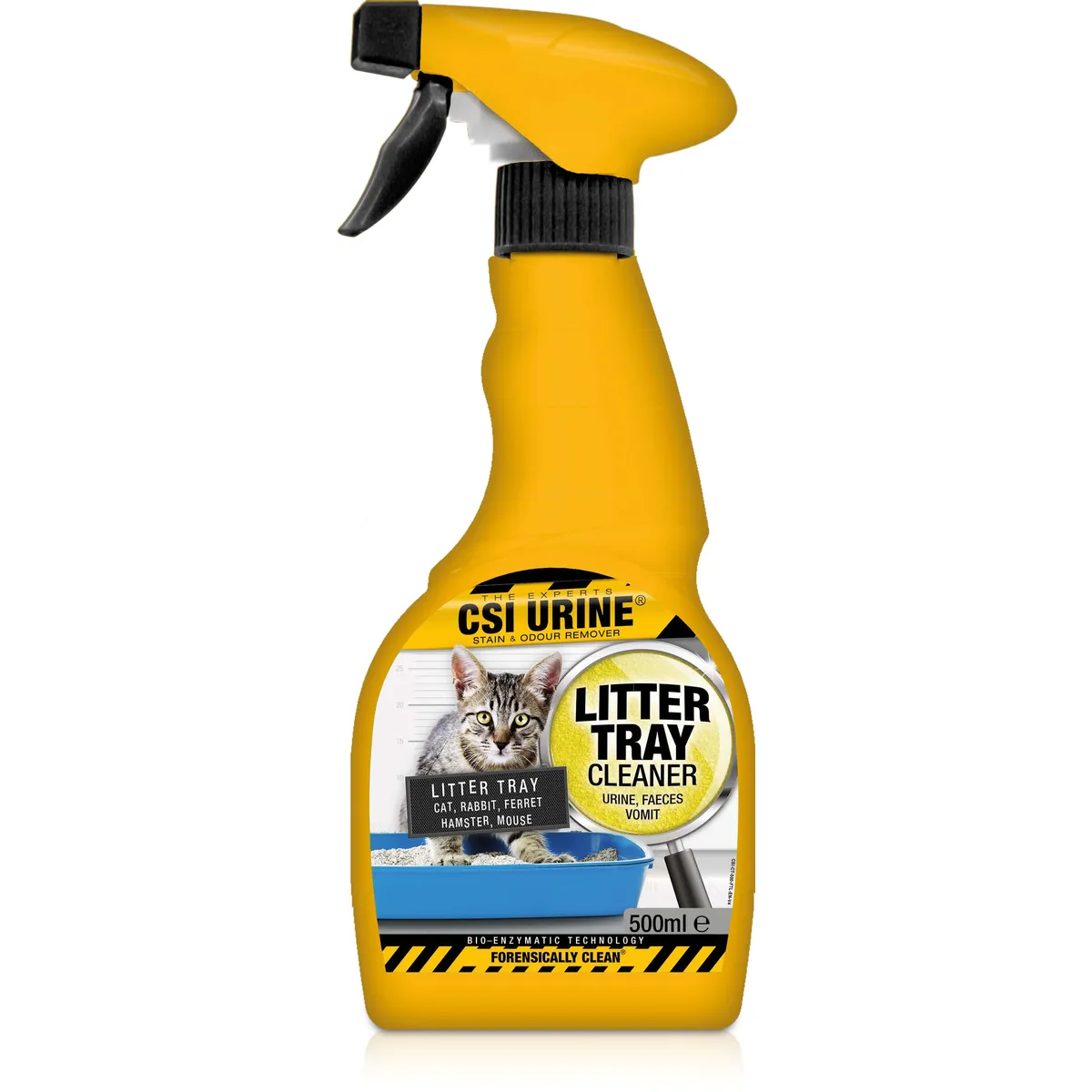 CSI Urine Cat Litter Tray Cleaner är ett kraftfullt verktyg för rengöring av kattlådor och slutna kattoaletter. Speciellt formulerad med bioaktiva enzymer för att angripa urin på molekylär nivå. Mycket effektiv för att ta bort smuts och fläckar från urin, avföring och kräkningar samt eliminera lukt för att förlänga kattströets livslängd upp till dubbelt så lång tid. En spray mellan rengöringar hjälper även till att förhindra att katten avvisar kattlådan på grund av dålig lukt eller lukt från andra katter.