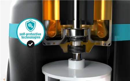 Kåpa i rostfritt stål, keramiskt skaft med trippeltätning samt oljebehållare. Allt sammantaget säkerställer maximal säkerhet och hållbarhet.
