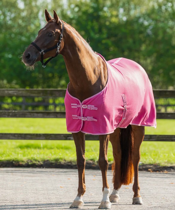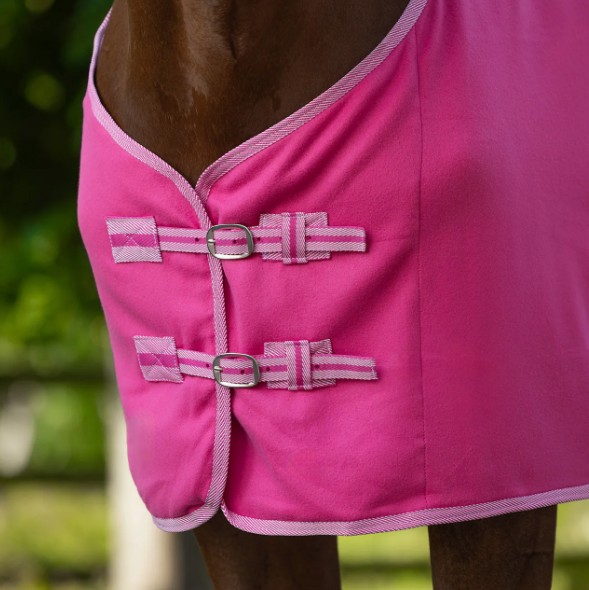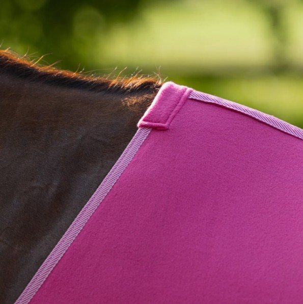 Use a fleece rug after unsaddling a horse to prevent him from cooling down too quickly. Decorated with a subtle piping.