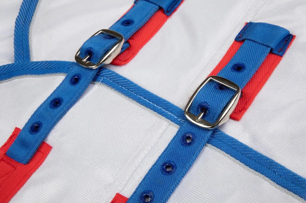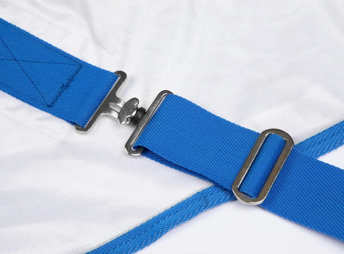 This light and airy mesh fly rug does a great job of providing the horse with an effective barrier to flies and bugs whilst still allowing air flow. The breathable fabric helps prevent sunburn and sun bleaching. Further features: 80% UV blocking*. Ultra-breathable. Anti-sun bleach. Lightweight & airy. Buckle chest straps. Adjustable fillet strap.