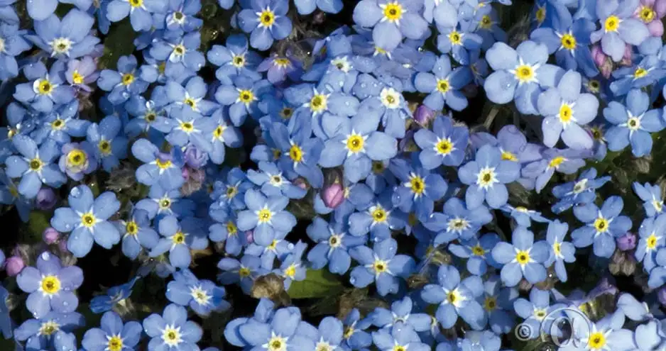 Skogsförgätmigej 'Blue Ball' är en välkänd och lågväxande kantväxt som blommar tidigt på säsongen med underbart himmelsblå blommor med ljus mitt. Växtsättet är kompakt och tillsammans med exempelvis tulpaner eller andra vårblommande lökar skapas en fantastisk tidig blomsterrabatt i ljuvliga färger. Sorten är lättodlad och trivs bra i både sol och skugga, i rabatten eller under buskar och träd. Skogsförgätmigej är en tvåårig växt men eftersom den frösår sig villigt kommer den självmant tillbaka år efter år. Rensa inte bort småplantorna på hösten. Sorten är mycket anspråkslös och går bra att odla på de flesta jordar men föredrar fuktig jord. Fröna kan sås direkt på växtplatsen eller frösås inomhus och planteras ut.