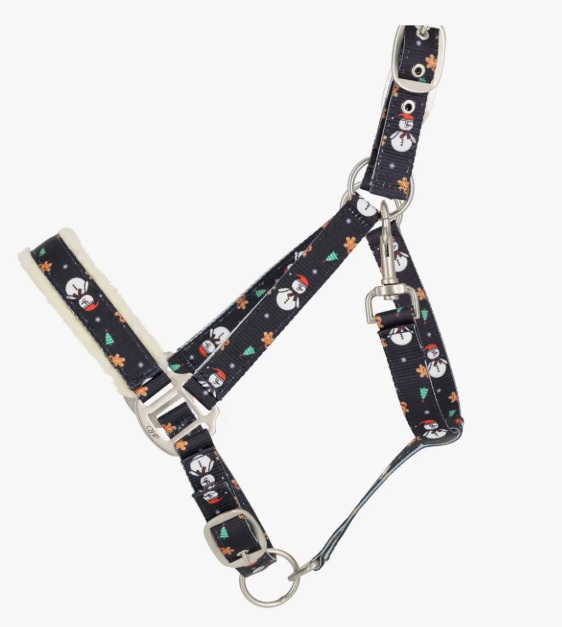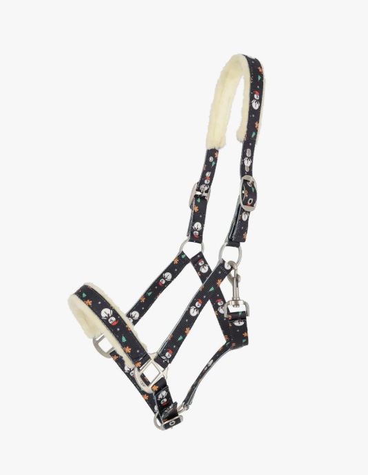 With this softly padded halter with Christmas print, your horse will certainly be ready for the holidays. The headpiece and noseband are lined with imitation wool for extra comfort.