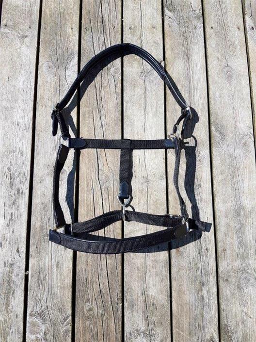 Grimma i läder/nylon. Svart läder med svart nylon. Storlek: Ponny & Full