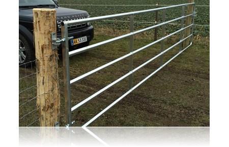 Denna grind passar även där öppningen inte har standardmått! Teleskopgrinden har ett låsbart utdrag på ungefär en meter. På grund av de insvetsade rören är upphängningen mycket stabil. Gångjärnen är justerbara så att grinden kan efterjusteras.