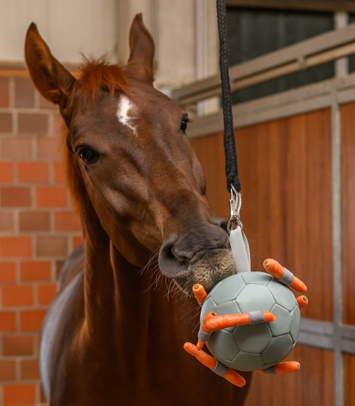 The Waldhausen Carrot Ball effectively prevents any boredom in the stable, whether on box rest or in recovery periods between work. This play ball is designed to provide the horse with a tasty pastime and variety. Due to the high quality production process with thermoplastic rubber and the coated PU outer surface, the ball is extremely durable as well as long-lasting.