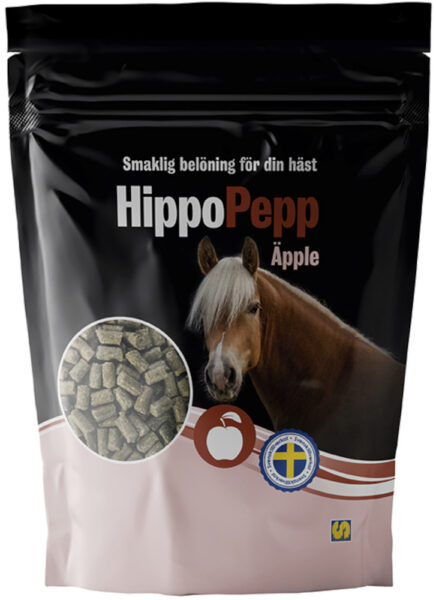 En smaklig belöning till din häst. HippoPepp Äpple skapar den lilla extra motivationen i en praktisk stor pelletsform. Innehåller aptitliga råvaror så som lusern och betfiber. Supersmaklig.