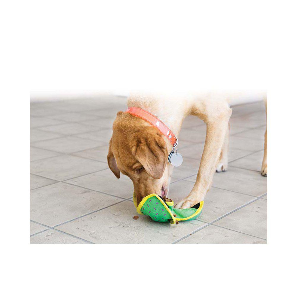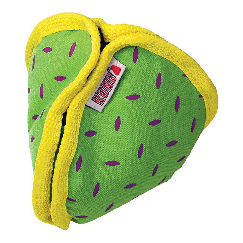 KONG Ballistic Hide 'N Treat brings treat dispensing fun to the KONG Ballistic family. This durable plush toy, delivers two-in-one action, as a mentally challenging treat puzzle and doubling as a fetch toy when closed. Ballistic Hide 'N Treat is designed with heavy-duty pockets and non-abrasive Velcro® enclosures to hide treats and occupy dogs through varying levels of difficulty while providing a comfortable chewing experience. Open the pockets for an easy challenge and close to increase the difficulty. Want to add to the play session? Close completely to turn the toy into a ball-shaped fetch toy. A reinforced wipeable canvas make this toy easy to clean while standing-up to tough play sessions for long-lasting fun.