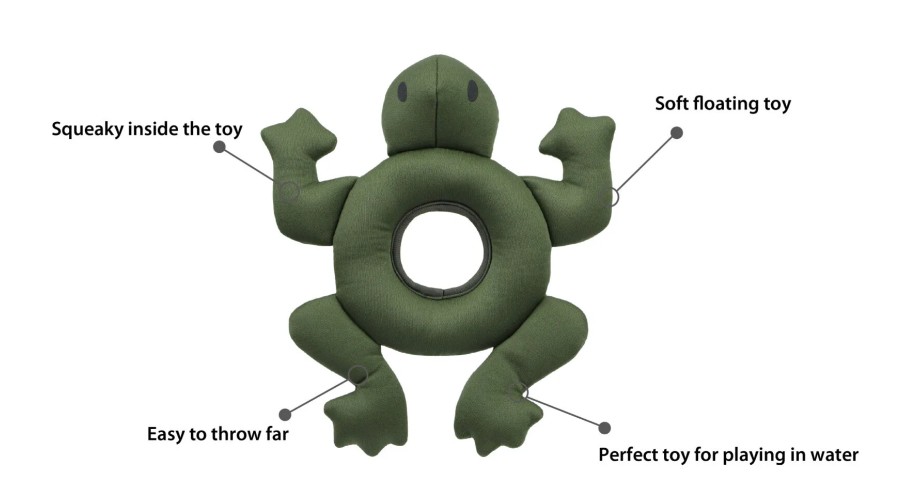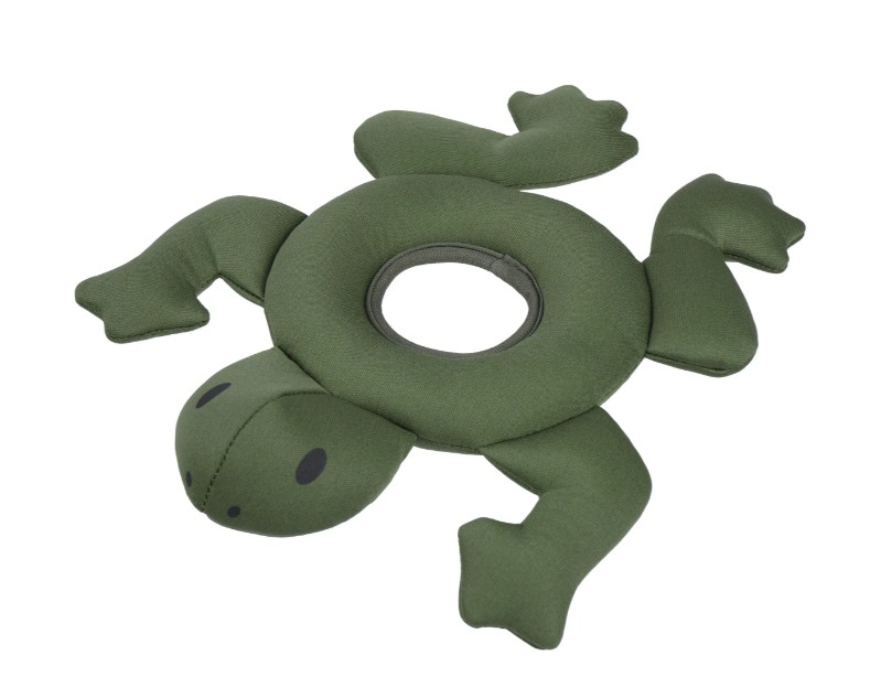 A funny fellow, the floating frog toy for dogs' water games. It features a squeaker and stands out against the water. The toy is lightweight and soft and with its round shape, easy to throw a longer distance.