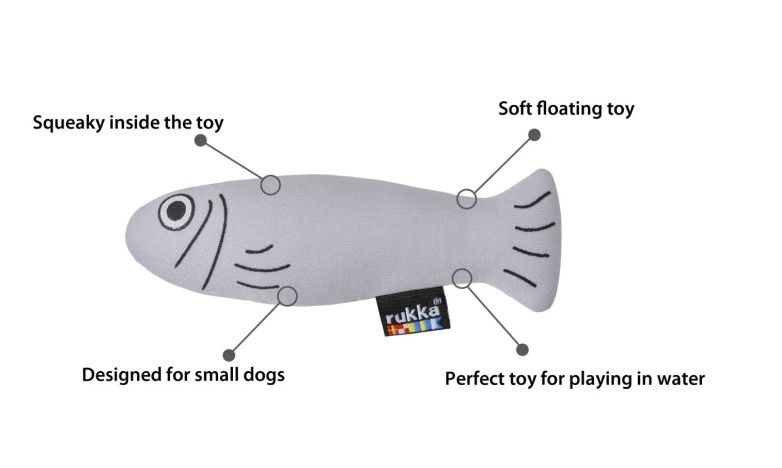 A funny fellow, the floating herring toy for dogs' water games features a squeaker and stands out against the water. This swimming toy is lightweight and soft and designed for smaller dogs.