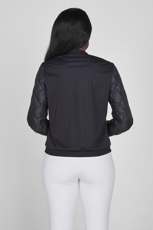 - Blouson style with tonal ribbed cuffs at collar, sleeves, and hem