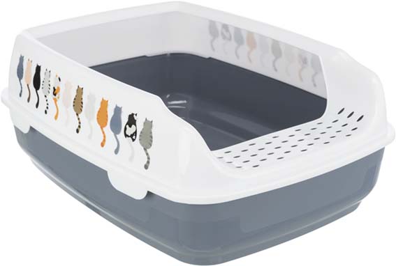 Kattlåda Delio med kant, 35x20x48cm. Grå/Vit
