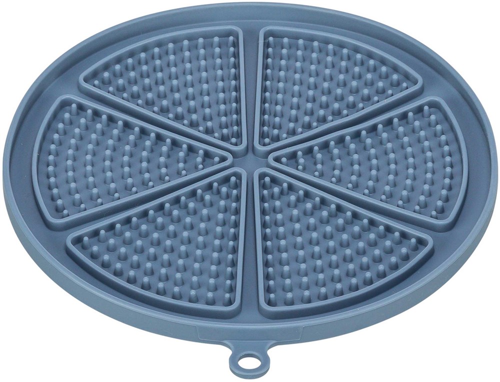 Lick’n’Snack Mattan ger din hund en lugn och trygg stund när den behöver varva ner. Slickande verkar rogivande och mattans mönster gör att din fyrbenta vän får i sig små mängder åt gången – vilket ger lång, stillsam aktivering. Bred på paté eller våtfoder, mattan kan även fyllas och frysas in för en svalkande överraskning. Den upphöjda kanten hjälper till att hålla fyllningen på plats och sugkopparna gör att mattan sitter stadigt på släta ytor. Tillverkad i silikon och testad av oberoende expertorgan för djurvälfärd och djurskydd. Mått: Ø 18 cm.