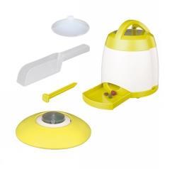 - roterande behållare inne i foderautomaten med justerbar öppning som frisläpper godbitarna