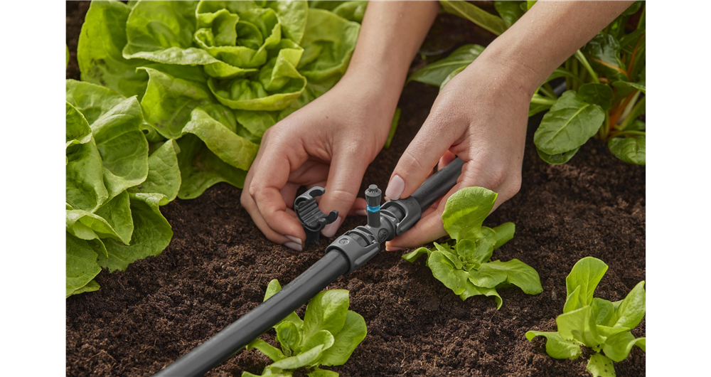 GARDENA Micro Sprinkler 360° säkerställer att dina blommor och grönsaksodlingar blir vattnade över hela ytan. Den möjliggör bevattning av växter med en fin dimma i 360°, den bästa placeringen av Micro Sprinkler är därför i planteringens mitt. Micro-Drip-System-komponenten har en kastlängd om 3 m och vattnar därmed en total area om 28 m². För snabb och smidig montering av sprinklern till 13 mm Anläggningsrör, kan du använda GARDENAs monteringsverktyg eller en T-koppling för sprinklers. Med ett förlängningsrör för sprinklers (Ref.nr. 13326-20) kan du höja upp Micro Sprinkler 360° och på så vis komma åt att vattna högre växande plantor. Reglerventil (Ref.nr. 13207-20) är rätt tillbehör om du vill kunna justera bevattningen eller helt stänga av delar av systemet eller enskilda anläggningsrör. Med hjälp av reglerventilen uppnås optimala resultat och vattenbesparande bevattning. Alla GARDENA sprinklers är enkla att skilja från varandra eftersom spraymönstret tydligt är märkt på sprinklerns ovansida, tack vare den intuitiva designen.