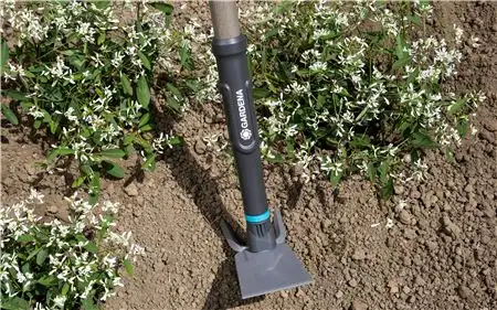 Trädgårdsjord kan enkelt bearbetas med GARDENA NatureLine-trädgårdshackan av högkvalitativt stål.