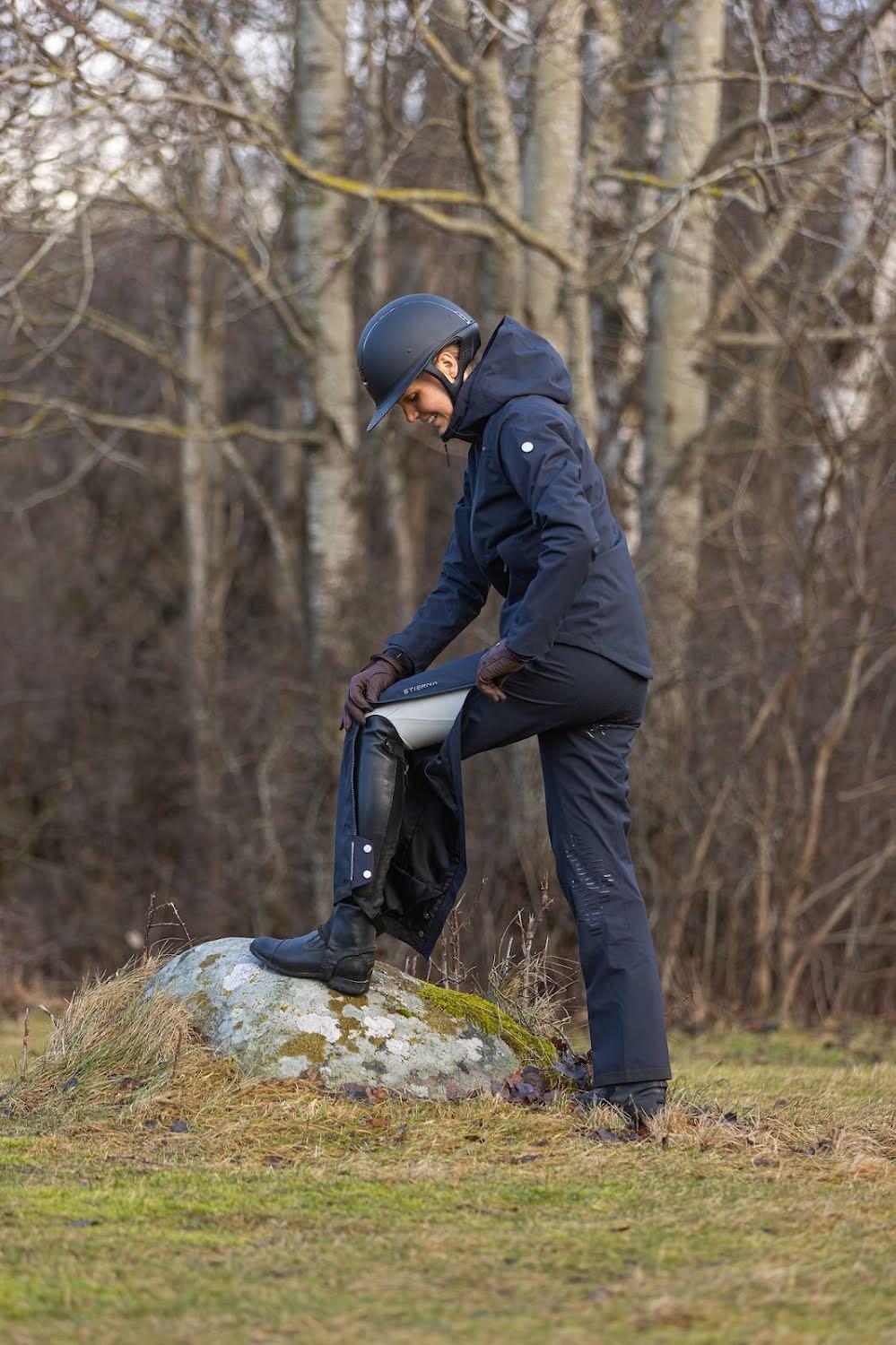 Skyddar dig mot regn och vind samtidigt som fukt och överskottsvärme snabbt kan avdunsta. Ett vatten- och vindtätplagg med hög andning, alla sömmar är tejpade för att hålla dig bekväm även under de blötaste dagar. Det skyddar dig mot väder och vind och oavsett förhållande kan du och din häst prestera optimalt.