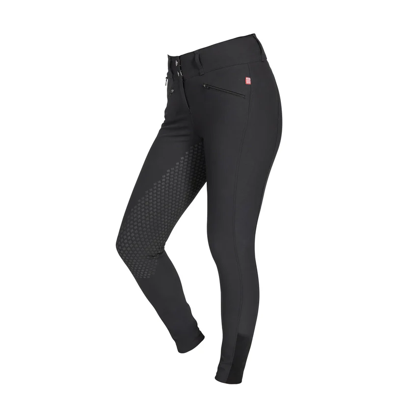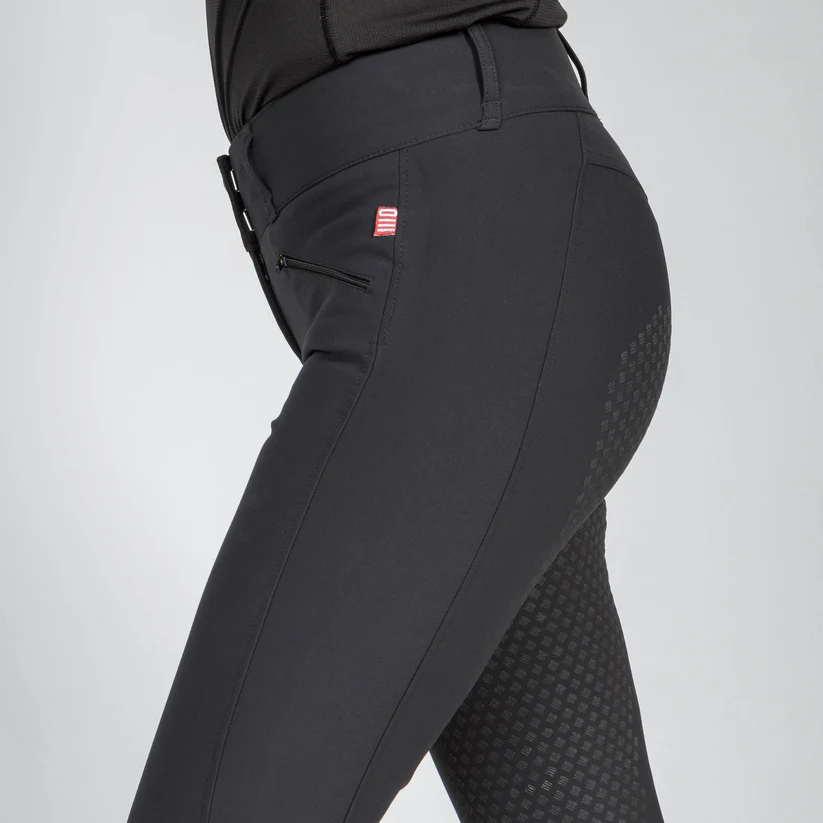 Midjan är elastisk och bekväm med en medelhög linning som följer ländryggens konturer. På så vis får du extra support där det behövs som mest under ridningen.