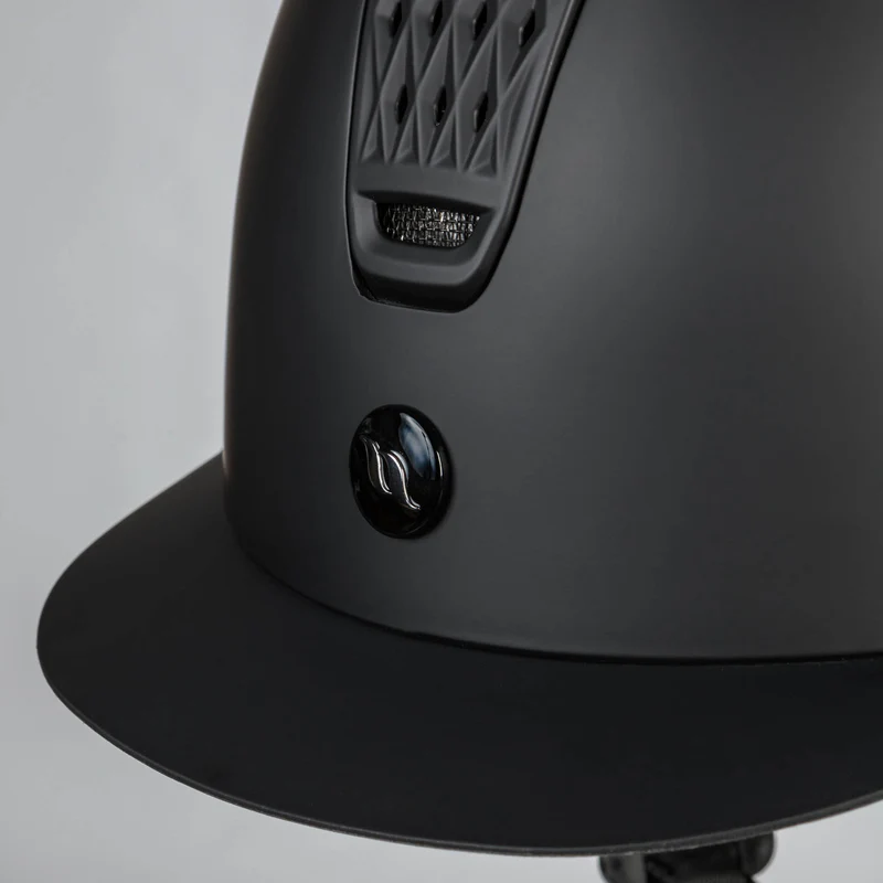 Praktisk funktion, hög säkerhet och en elegant, klassisk look har varit vägledande principer vid utformningen av vår nya ridhjälm. Den är utrustad med magnetisk knäppning, vilket gör spännet enkelt att stänga och öppna med en hand och utan att ta av handskarna.