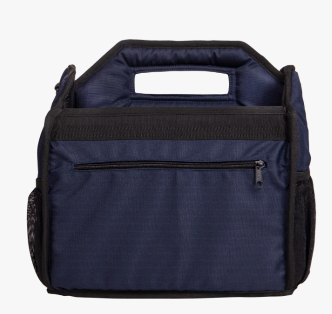 The grooming bag mesh has a sturdy center piece with a handle. This makes the grooming bag easy to carry. The mesh bottom ensures that the bag is easy to keep clean. The mesh pockets and the zippered pocket at the back give you plenty of storage space.
