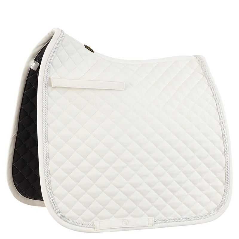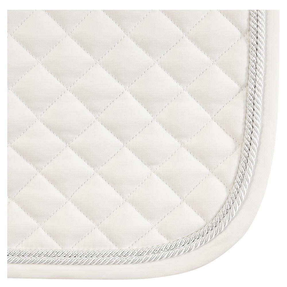 The design has also been subtly refined. The smaller diagonal quilting gives the saddle pad a modern, well-finished appearance and helps maintain its shape over time. The double cord piping, with a discreet glitter accent, adds a touch of elegance without overpowering the overall look. An adjustable girth loop ensures the pad stays neatly in place, ride after ride.