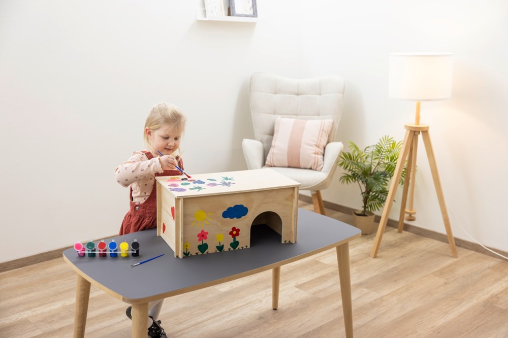 The rodent cabin for painting offers rodents a place to retreat and children a creative activity. With its removable flat roof and harmless water colour, it is ideal for small animals.