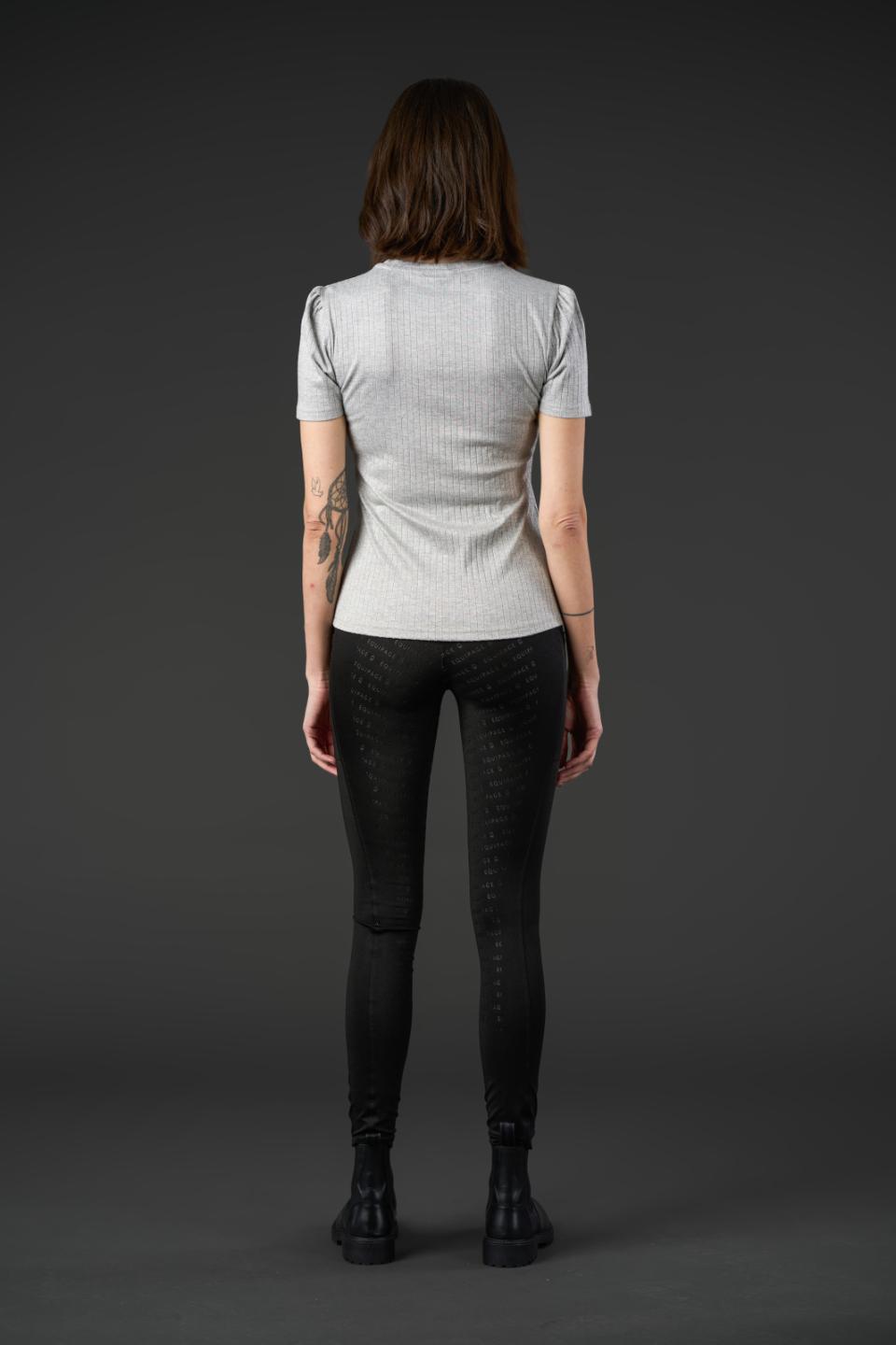 - Delikat ribbad T-shirt med glitter och logobrodyr på bröstet