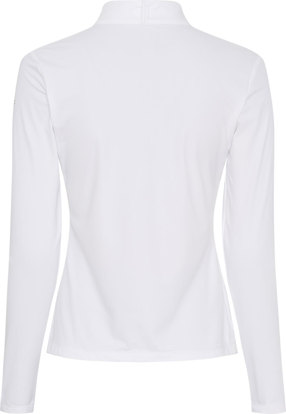 - A long sleeve tight fitted blouse with high neck that is perfect for both competition and every day use