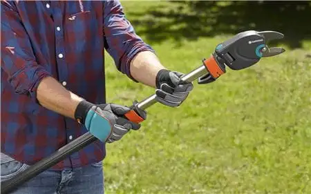 Klippvinkeln på upp till 200° kan justeras steglöst från marken. Det gör att grenar kan klippas i precis vinkel, oavsett åt vilket håll de växer.