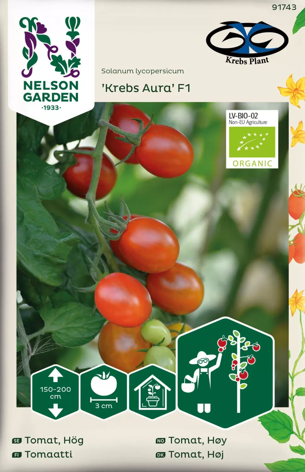Ekologiskt frö. En vacker orange-röd körsbärstomat med intensiv arom och överdådigt sötma. Vattna regelbundet. Behöver tjuvas, dvs ta bort skott i bladveck. Reg. Krebsau