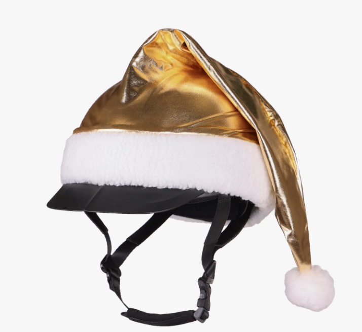 This Christmas hat can be worn on top of a safety helmet. With white border and white pompon. Finish your Christmas horse with other Christmas articles.
