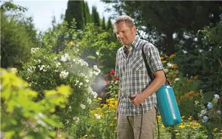 Tack vare den långa slangen kan du även nå högre växter enkelt och bekvämt, till och med om sprutan står på marken eller på en vagn.