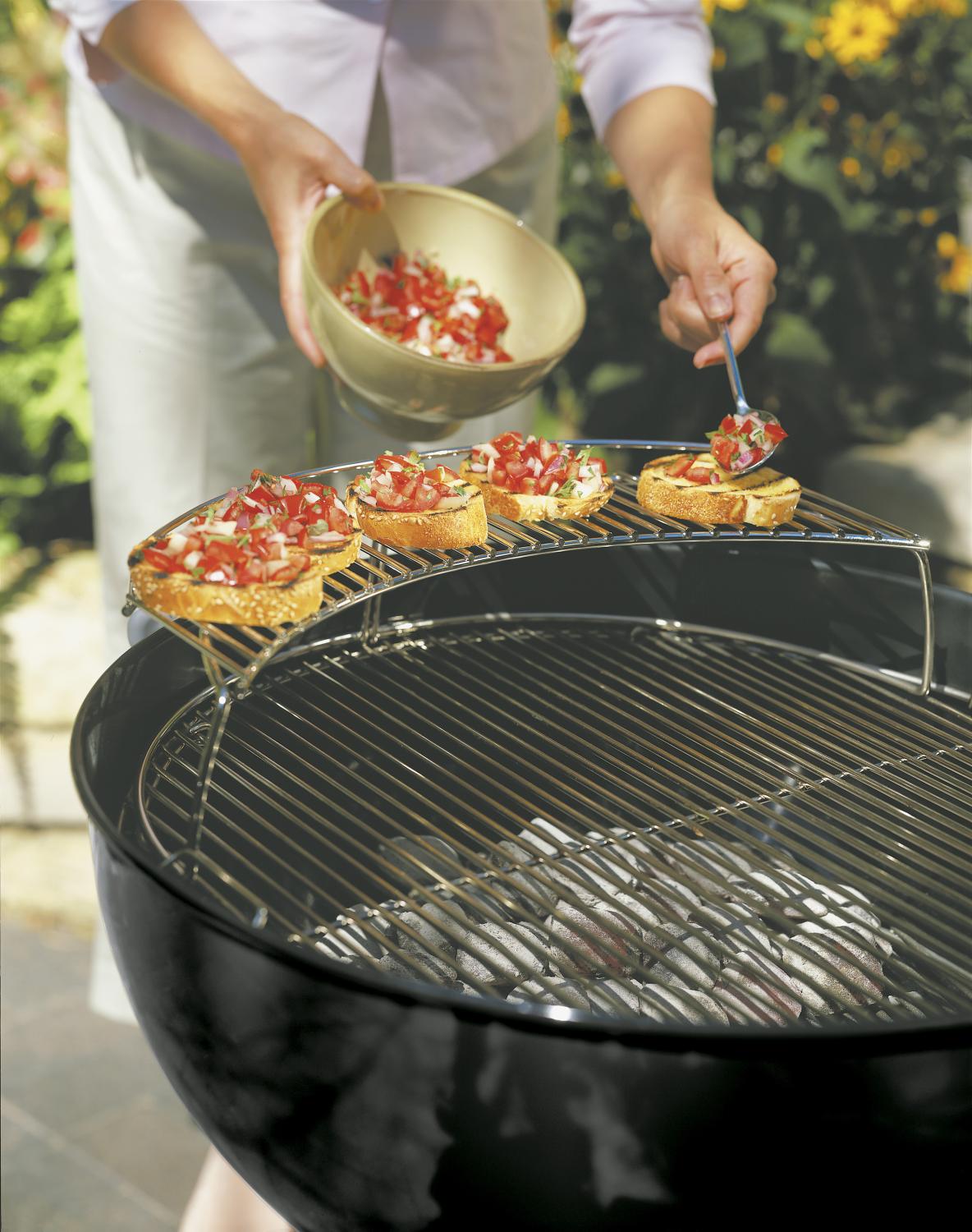 Med Weber Original-brödhållaren blir det enklare att bjuda gästerna på krispigt bröd och spröda grönsaker medan huvudrätten grillas färdigt. Brödhållaren placeras ovanpå det vanliga gallret, vilket ger dig extra arbetsyta. På så sätt hålls brödet även på avstånd från den direkta värmen och blir inte lika lätt bränt. Med brödhållaren kan du enkelt anpassa dig efter huvudrätten och se till att brödet eller grönsakerna blir färdiga samtidigt som resten av maten.