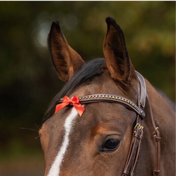 This red warning bow can be easily attached to the browband with a hook-and-loop fastener. The bow alerts other riders to keep a safe distance from your horse to avoid unpleasant situations.